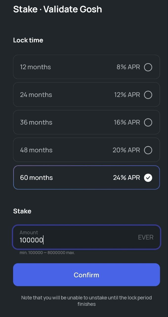 100EVER lock 12m ARP 8% Reward 0.5865GOSH