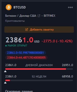 🔸 BTC, $: 23,690.25 (-13.83 %)