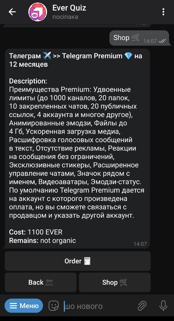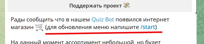 Quiz Bot появился интернет магазин 🛒 (для обновления меню напишите