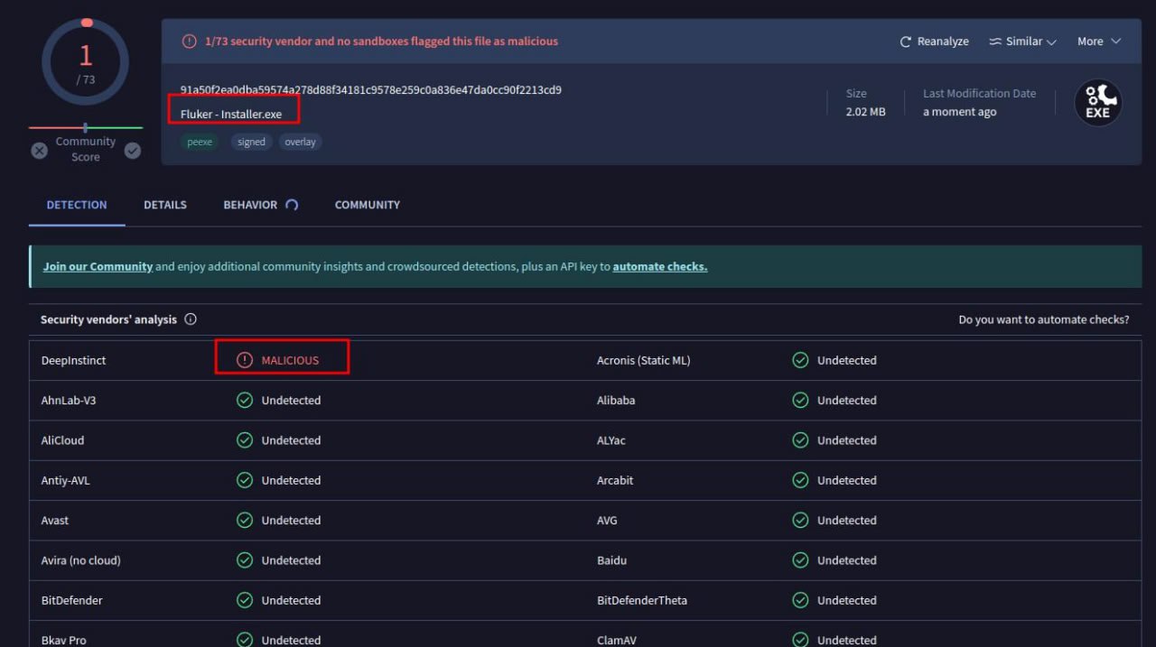 Fluker - Installer.exe. Любой пользователь не должен доверять всяким .exe и проверять их через VirusTotal. Ты проверял проект, пробовал им пользоватся или просто картинка не нравится и просто хочется спорить?